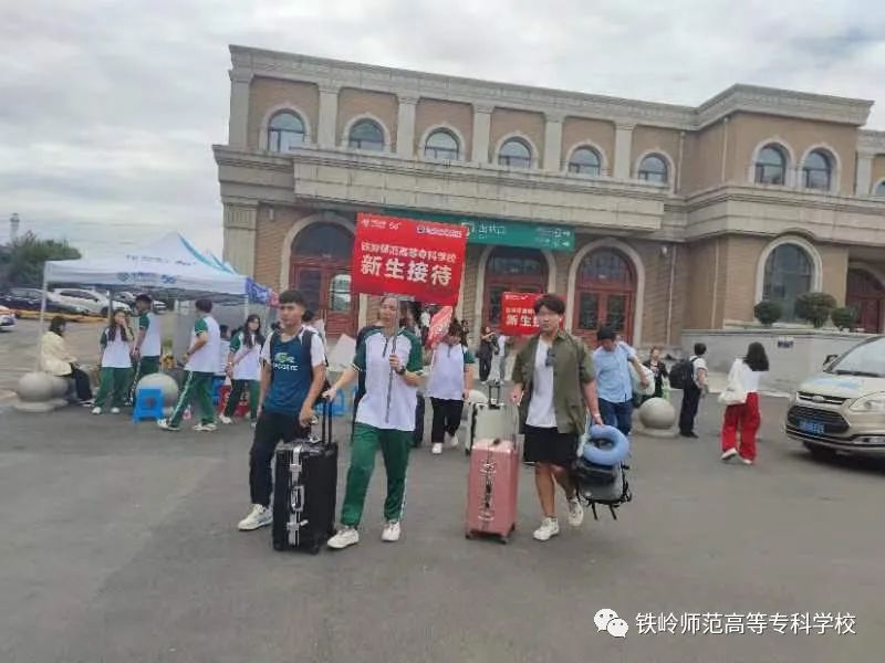 学校在铁岭西站和铁岭站分别设立接站点,接站志愿者现场组织引导新生和家长有序乘车。