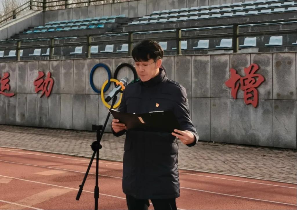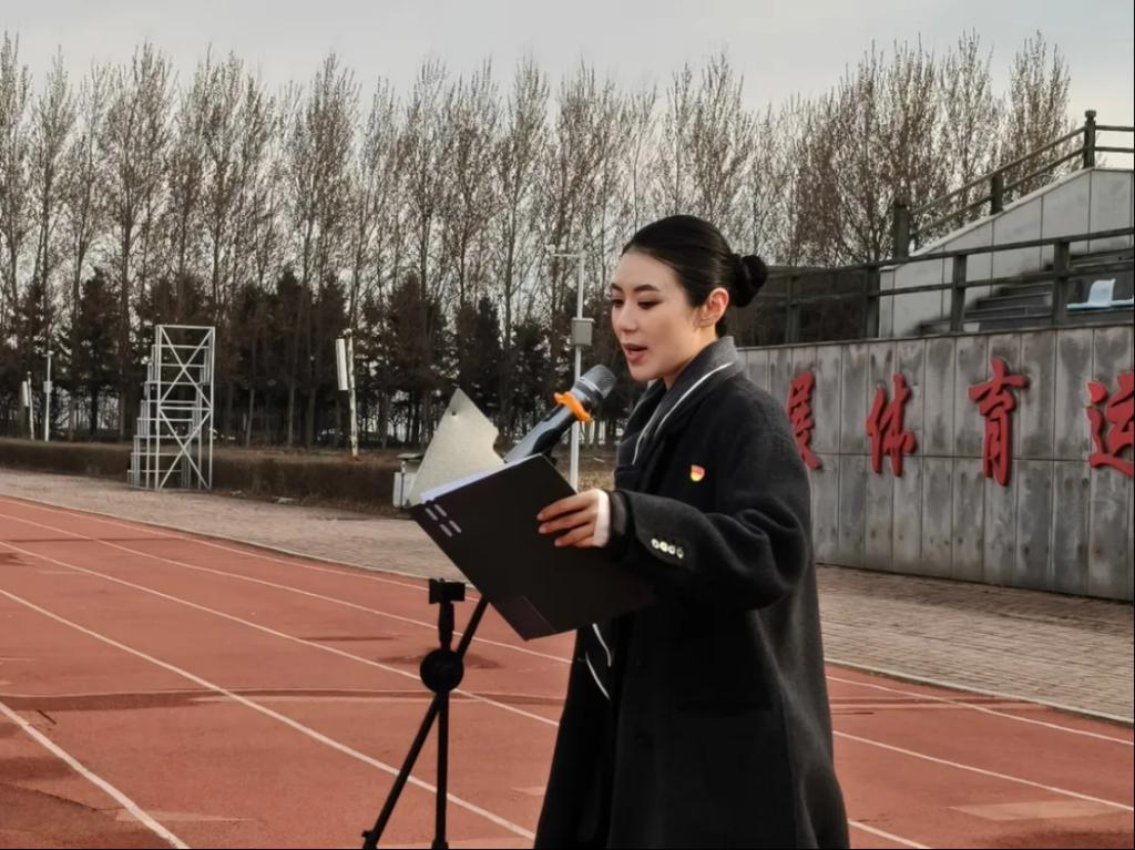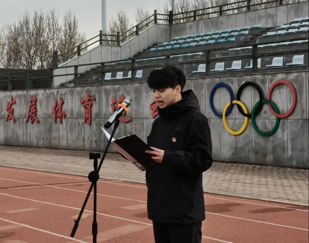 学校团委书记迟宝策在升国旗仪式上讲话。他指出,清明节前,深切缅怀革命先辈,表达对人民英烈崇高敬意,是一堂生动的爱国主义教育课。他强调,一个有希望的民族,永远不会忘记他们的英雄,一个有前途的国家,也是永远不会忘记他们的先烈。他汇报了铁岭师专“居家思政--红色实践团”抗美援朝精神学习小队深入沈阳、铁岭、丹东等地的实践情况,号召师专青年积极参与红色研学,肩负起传承红色基因使命。他希望,全体学子仰望国旗,不仅是为了表达对先烈们的追思,更是为了汲取前行的力量,以青年人奋斗的姿态,勇攀高峰,砥砺前行,成为国家的栋梁,民族的希望。