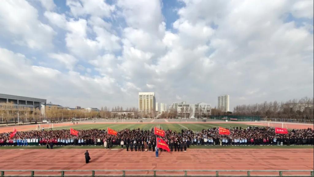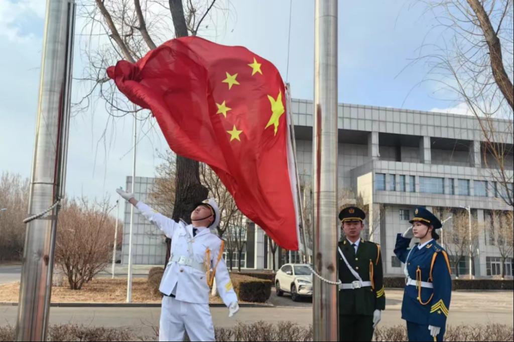 在这隆重时刻,国歌激昂奏响,五星红旗迎着朝阳冉冉升起,与现场师生坚定目光交相辉映。国歌、青春、热血、信仰在这一刻汇聚成一股强大的力量,共同见证着祖国的辉煌与荣耀。
