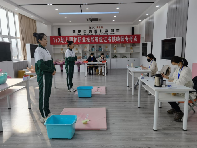 为贯彻落实《国家职业教育改革实施方案》精神,积极开展1+X 证书制度试点工作,2021年11月28日,“教育部1+X幼儿照护职业技能等级证书”考试在我校学前教育学院成功举行。